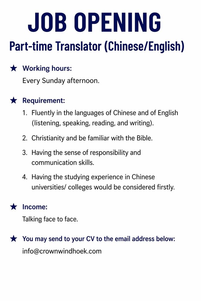 Account Name: Windhoek Crown Christian Church